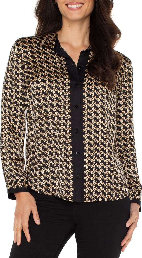Abstract print button up blouse/ black gold combo