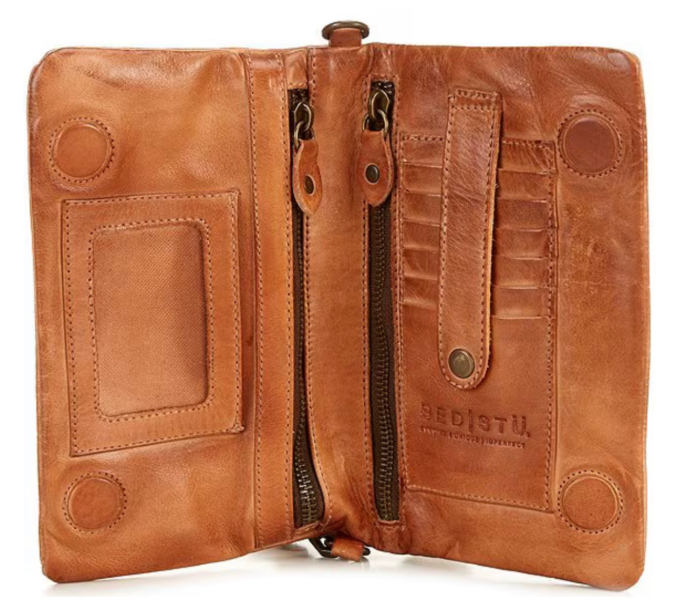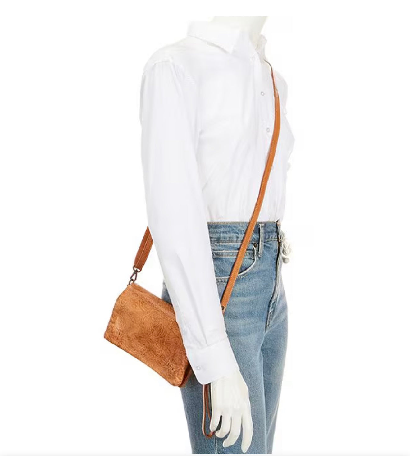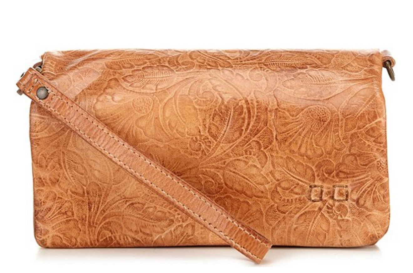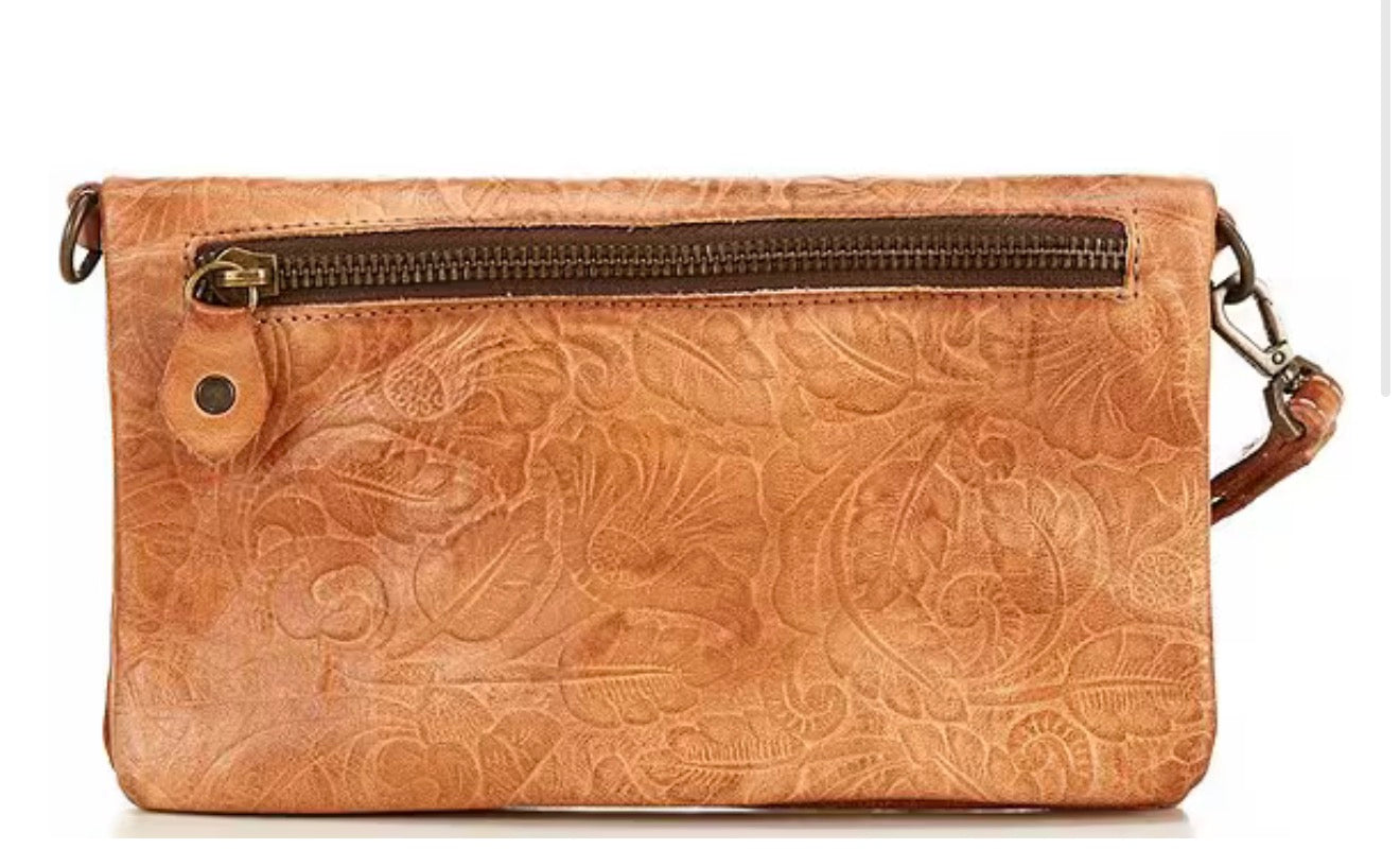 Effortlessly cool and perfectly sized for everyday essentials. This crossbody from Bed Stu features beautifully distressed leather with a unique, embossed finish. Wear it as a wristlet or add the strap for hands-free convenience. A stylish and versatile piece for any look!