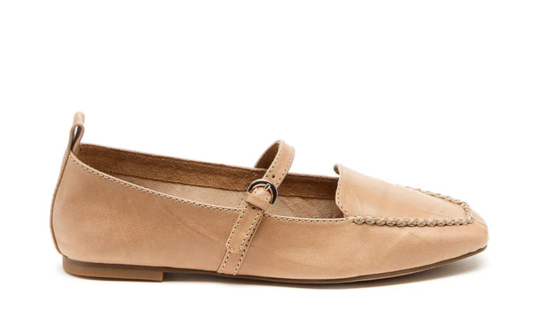 The Ferry Mary Jane Flats in earthy bison hue are a versatile and comfortable choice for fall, featuring artisan stitch details, a bubble sock insole, and a collapsible upper for easy packing.