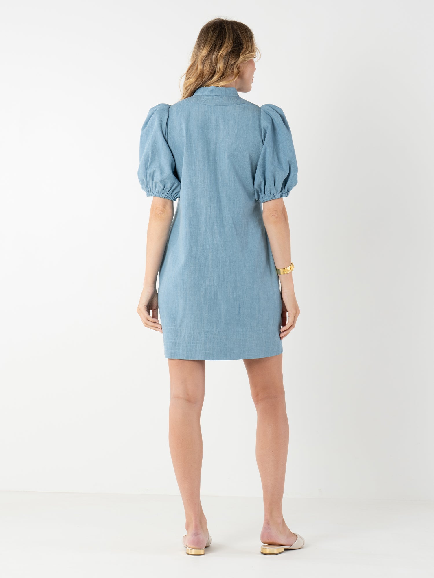 A mandarin-style collar and soft puff sleeves for a touch of volume. The slightly tailored silhouette offers subtle structure, balanced with side pockets for functional ease. Clean lines and thoughtful detailing make this an effortless go-to for everyday polish.